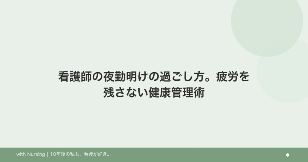 夜勤明けの看護師向けに、睡眠・食事・生活リズムの整え方を解説。疲労を蓄積させない具体的な過ごし方を紹介します。 -