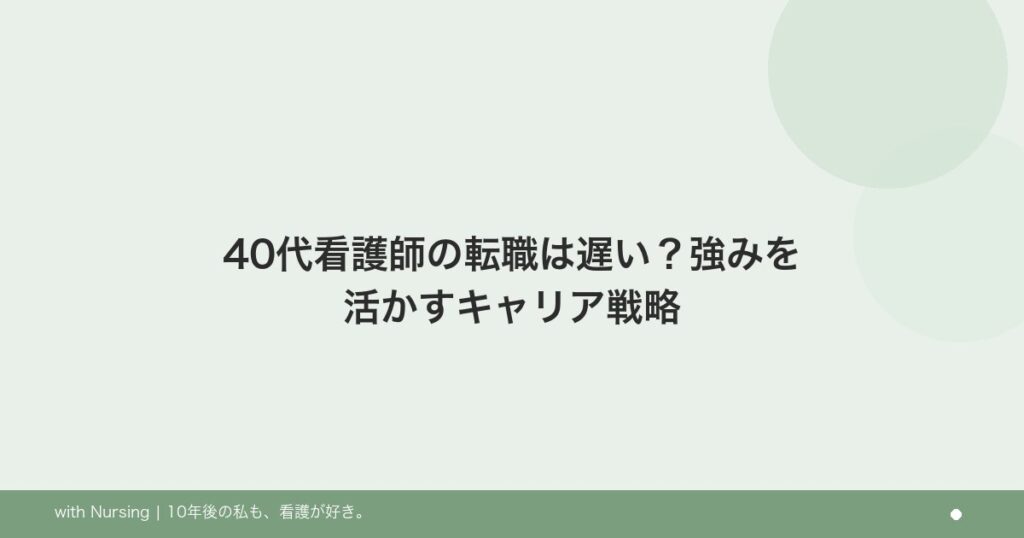 40代看護師の転職は遅い?強みを活かすキャリア戦略