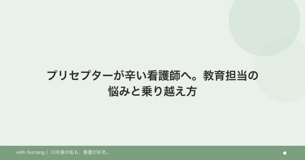 プリセプターや教育担当が辛い中堅看護師へ。負担の正体と、自分を守りながら続けるための具体的な考え方を解説します。 -