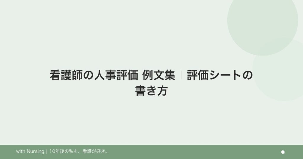 看護師の人事評価シートで使える例文を評価項目ごとにまとめました。そのままカスタマイズして使えるフレーズ集も掲載。 -
