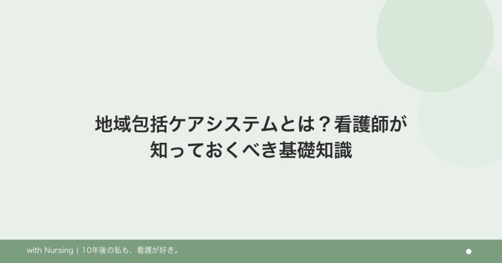 地域包括ケアシステムの基本を看護師の視点でわかりやすく解説。訪問看護・退院支援・多職種連携との関係を整理します。 -