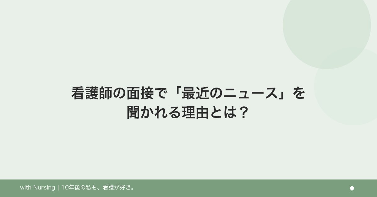 「最近のニュース」の質問は、正解を当てるテストではありません。あなたがどんなことに関心を持ち、どんな看護をしていきたいのかを伝えるチャンスです。