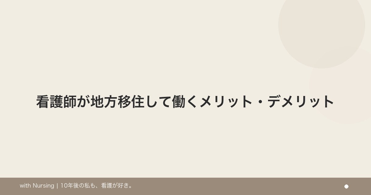 「地方に移住して、もっとゆとりのある生活がしたい」。都市部で働く看護師の中には、そう考える方が増えています。